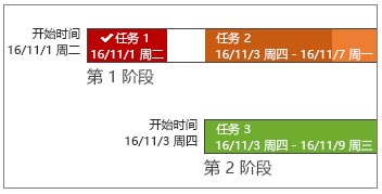 借助 Project 2016,不仅可以利用多个日程表来展示工作的不同阶段或类别,还可以单独为每个日程表设置开始时间和结束日期,以更清晰地描绘所涉及的工作的总体情况。