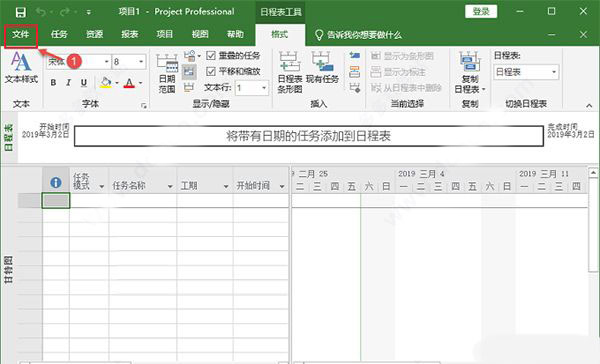 3、打开后,可以看到此时的界面里是没有横道图的,这里需要点击下方的第一个图标就能切换出横道图了