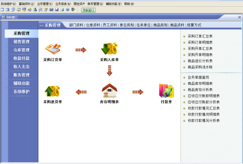 目前速拓进销存管理系统为用户提供了系统功能维护、业务管理、业务报表、财务管理及辅助功能等五大模板,同时还提供了更加全面的统计分析功能,将企业的采购、销售、存货、成本、利润、应收、应付、现金、银行存款等多方面的运营情况进行全面汇总分析,从而使企业的经营者能够迅速掌握企业的实际运作状况,欢迎有需要的用户们免费下载体验。