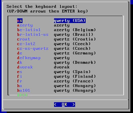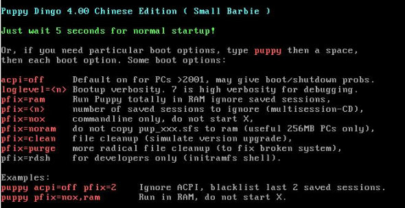 启动Puppy后,会提示你选择初始配置:先选择键盘US。再选择 X server。 Puppy自带了两种 X server: Xorg和Xvesa。建议先选择"Xorg",如果“Xorg”测试通不过的话,再选择"Xvesa"(分辨率较低,但保证能进入图形界面)。