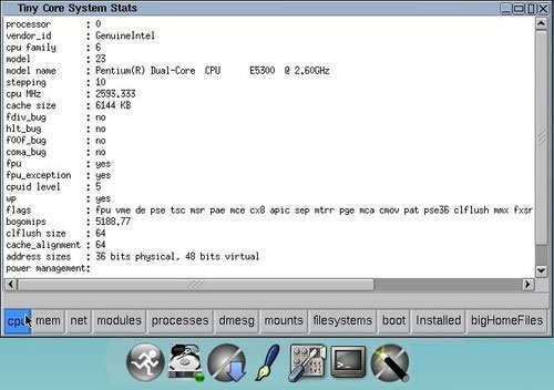 Tiny Core系统状态:CPU、存储、网络等