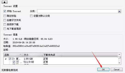 5、提供下载完成后重新效验torrent种子文件功能(该选项默认开启)