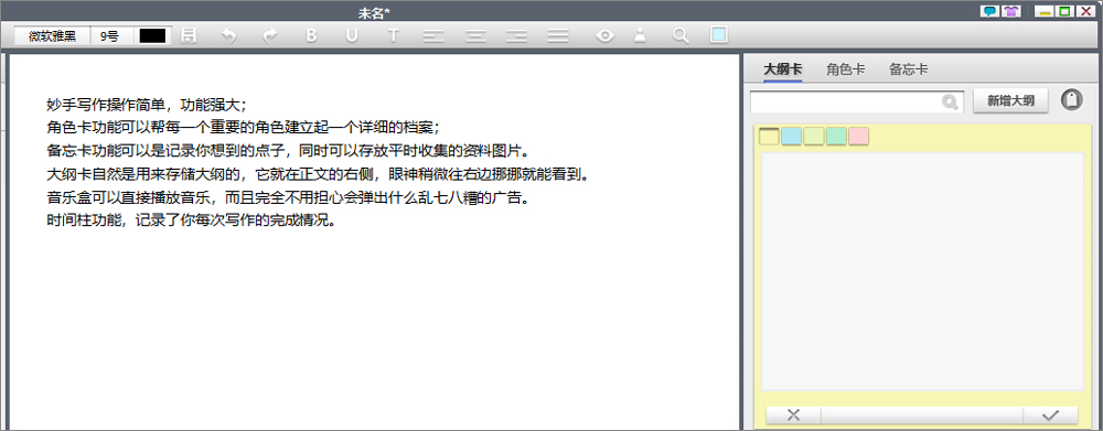 - 角色卡功能可以帮每一个重要的角色建立起一个详细的档案;
