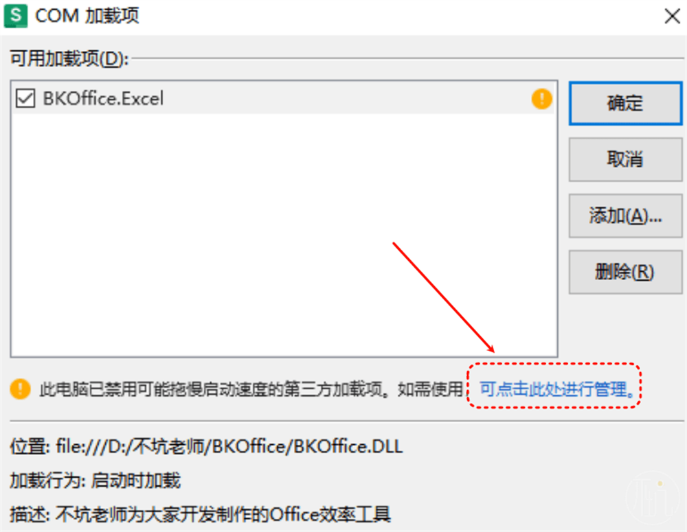 在使用过程中,或者在Com加载项中弹出下面这个界面,必须选"否"。