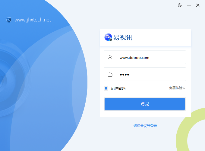 1、在易视讯登陆界面中分别输入账号、密码,点击右上角的设置图标,设置服务器(可自定义企业服务器),点击登录。