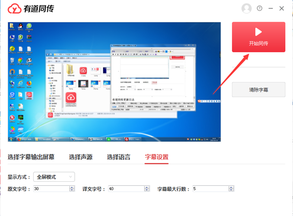 3、选择字幕输出屏幕,支持设置本机屏幕,或者外接屏幕