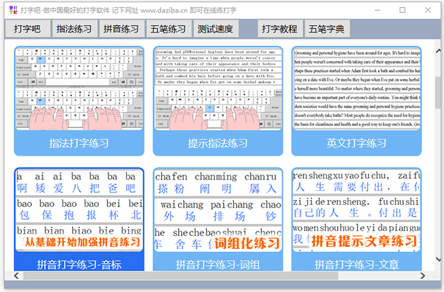 拼音打字练习不但可以让用户了解拼音打字的方法,还可以帮助用户学习标准的拼音。音节练习、词汇练习、文章练习可以给初学汉语或者汉语拼音水平不高的用户提供了极大的方便, 有效提高您的拼音打字速度以及汉字拼音掌握能力。