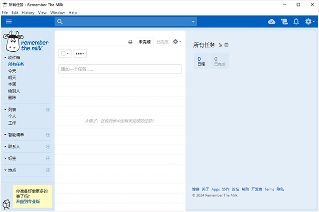 虽然功能很强大,但界面设计得相当友好,即使是新手也能快速上手。不过,对于一些复杂的设置可能需要多花点时间去熟悉。总体来说,“Remember The Milk”确实是一款非常值得一试的任务管理工具,特别是对那些经常需要处理多项任务的人来说,它能真正提高你的工作效率!