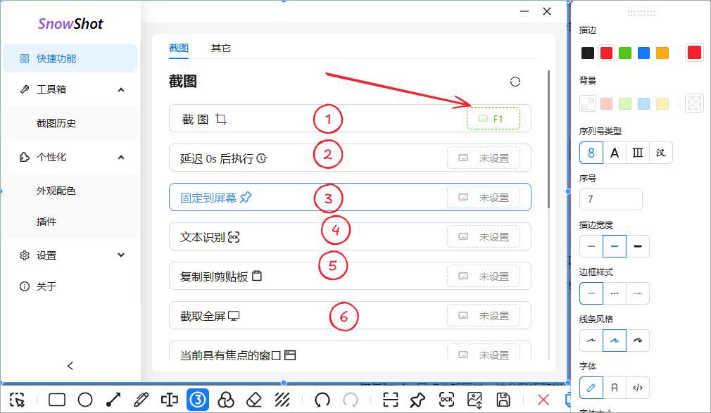 3、完成截图区域选择后,会进入标注编辑模式。Snow Shot 提供了丰富的标注工具,帮助您快速为截图添加说明和标记。