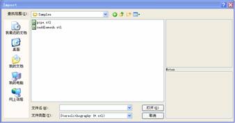 2、在文件 菜单上选择 Import… . 按扭,弹出如下文件导入对话框。浏览找到文件 pipe.stl ( 一般在目录 C:\Program Files\Rhinoceros 6\Plug-ins\RhinoResurf\ Samples\ 下 ) 并打开文件。