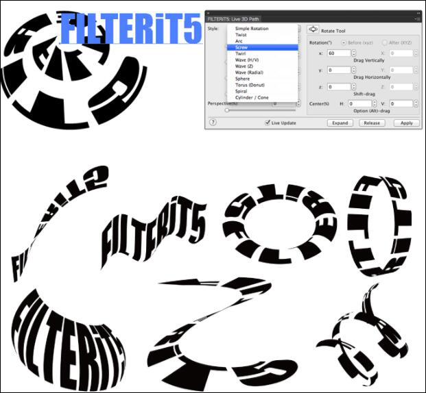 凭借其易于使用的特点,创造惊人的图像,包括从简单到复杂,在您的指尖。使用后你就会发现FILTERiT它为你提供的各种功能与效果.提供了多种选择,从简单的失真三维变换概述对象,包括3D变换过滤器,对象,都可以转化为球体,螺旋,甜甜圈,或气瓶,只需点击鼠标就可以实现,此外,您还可以使用插图中的透明度能力生产、运动模糊效果,需要的用户可以在本站下载最新版本使用。