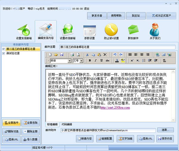 6、支持多媒体邮件、邮件内容变量功能、IP瞬时变换功能;