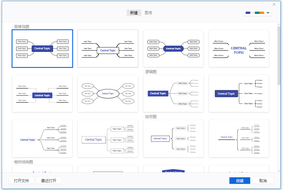 精心搭配的配色方案构筑出百变的主题风格,轻松选择即可让你的导图更出彩