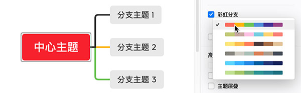 XMind 为彩虹分支提供了六组配色,可以选择自己喜欢的分支配色。