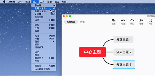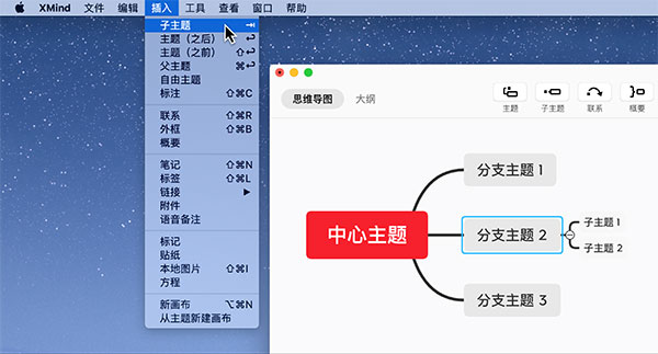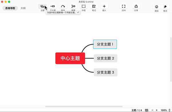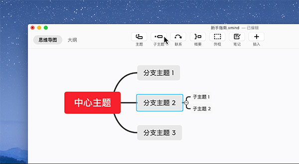 选中主题,点击工具栏的子主题进行添加。