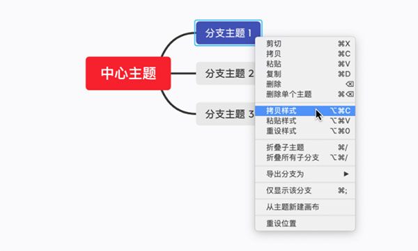 在 XMind 中,样式和文字内容一样可以进行拷贝/黏贴。如果你不想一键将样式更新到同级别的主题,可以用这个功能进行样式的同步。