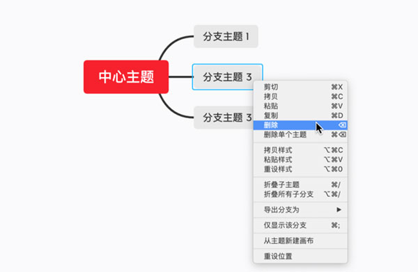 2、分支主题:中心主题发散出来的第一级主题为分支主题。