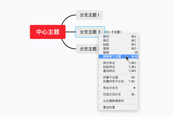 3、子主题:分支主题发散出来的下一级主题为子主题。