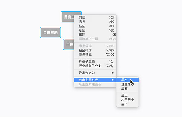 对齐自由主题,右键即可唤出对齐选项,也可点击菜单栏>编辑>自由主题对齐进行对齐。