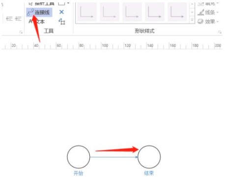 9、工具栏,开始 - 连接线。将【开始】和【结束】两个图形连接。
