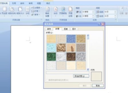 3、单击之后会弹出如图对话框,这时我们可以看到设置背景的方式有四种,假如我们是想要用“纹理”来设置的话,那么单击“纹理”按钮。