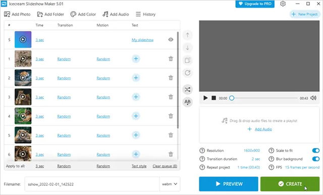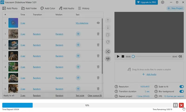 我们的幻灯片软件最好的是什么?它实际上是尽可能简单的使用。拖动和删除图像和音频,定制默认/大量/随机设置,排序选项将帮助您轻松创建一个漂亮的幻灯片。