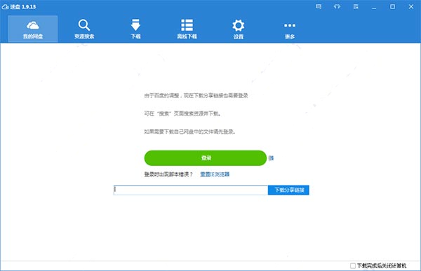如果是下载自己网盘的文件,在速盘内登录自己的网盘账号,将需要下载的文件设为分享,然后使用这个分享链接下载该文件。或者先打开浏览器登录网盘账号,将需要下载的文件分享出来,然后运行速盘使用分享链接的方式下载。