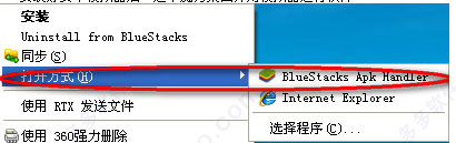 win7系统:下载并安装模拟器即可,右击打开方式选择“BlueStacks apk handler”。