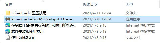 1、在本站下载解压,得到primocache 4.1.0安装包和无限试用补丁;