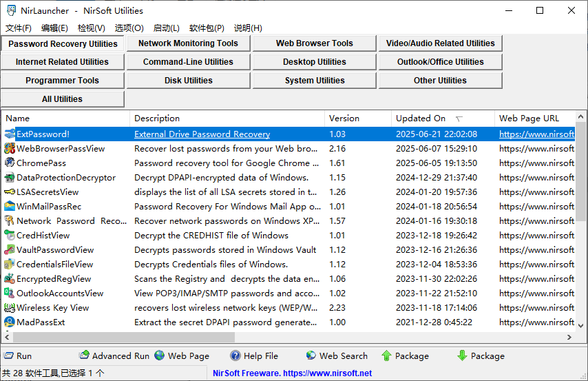 NirLauncher是一款非常不错的NirSoft软件合集,里面包含了100多款免安装的便携式软件,用户可快速的从中进行使用,当然里面所有的一切都是直接使用的,完美的跳过了安装的复杂步骤,也不用进行软件下载,直接双击即可,非常方便!另外,由于软件本身也是免安装的,用户可以将其放入到U盘中随身携带,当需要软件的时候直接使用就可以!温馨提示:某些杀毒软件报告部分小程序可能有病毒,这是误报,将其添加到信任列表即可。
