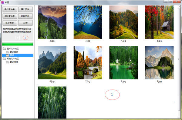 即用鼠标把图片拖入下图中,红圈标记的1,2的区域,软件将自动保存这些图片。当然,你还可以直接拖入文件夹,软件会自动识别文件夹里面的图片,并保存。其他类型的文件将自动过滤掉,不保存。把图片导出到电脑桌面,非常简单。用鼠标双击要导出的文件夹,或者选择(可多选)要导出的图片,然后点击左边的相对应的导出按钮,图片会被导出到电脑桌面,您可以直接看到。