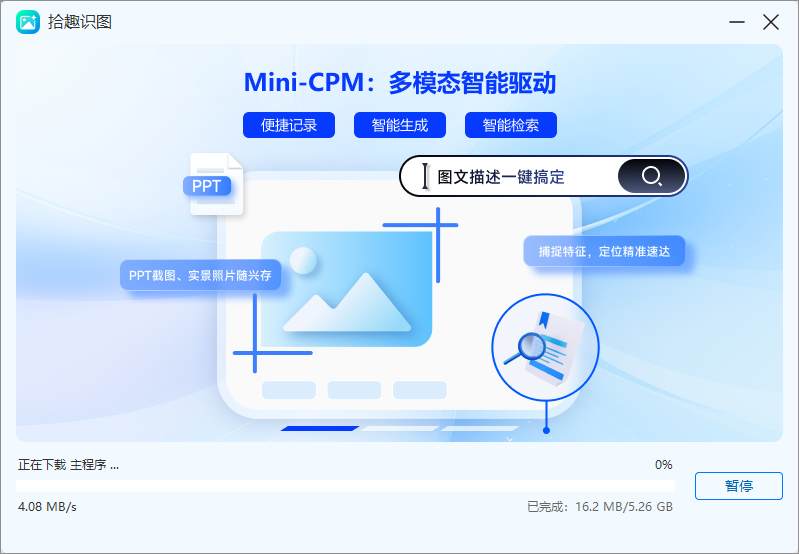 拾趣识图官方版是驱动人生推出的一款功能强大的图片管理软件,专为电脑用户设计。它采用多模态智能驱动技术,提供便捷的记录、生成、检索和图文描述功能,一键即可轻松完成。软件支持PPT截图和实景照片的随意存储,能够根据图片特征并进行精准定位,实现快速访问。此外,拾趣识图全面涵盖了截图、日常照片、会议PPT等多种图片管理需求,集成了丰富的功能,无论是工作还是生活场景,都能轻松应对。通过这款软件,用户可以高效地管理图片,提升工作效率,同时也为日常生活带来便利。对于需要这款软件的朋友,欢迎前来下载体验~