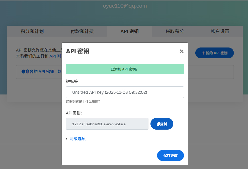 5、获得api密钥,复制到软件中注册激活即可;