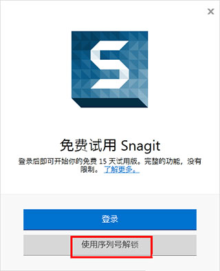 6、打开软件是会弹出需要注册的界面,选择使用序列号解锁;