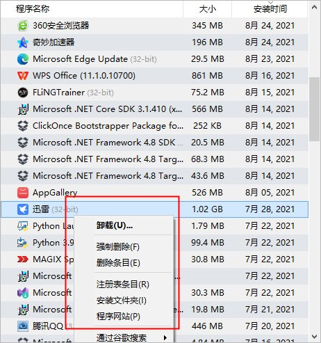 使用教程非常直观:打开软件后可以根据大小和安装时间排序,找到目标程序后右键选择删除或强制删除。卸载完成后,软件会自动扫描剩余文件和注册表项,确保彻底清除。此外,用户还能通过右键菜单查看程序的注册表条目或安装文件夹,方便进行进一步操作。