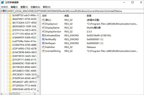7、点击查看程序的注册表条目以后就可以自动打开注册表编辑器并定位到该软件的位置,方便进行修改、删除等操作。