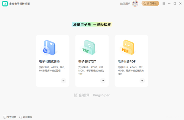 第一步、电脑上双击图标运行金舟电子书转换器,根据需要选择转换功能。