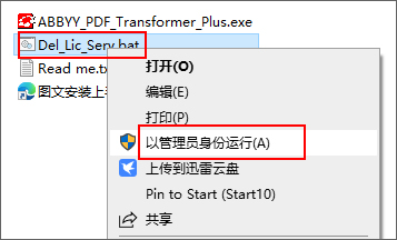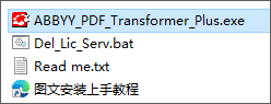1、下载解压,得到ABBYY PDF Transformer+中文版,以及Del_Lic_Serv.bat补丁文件;