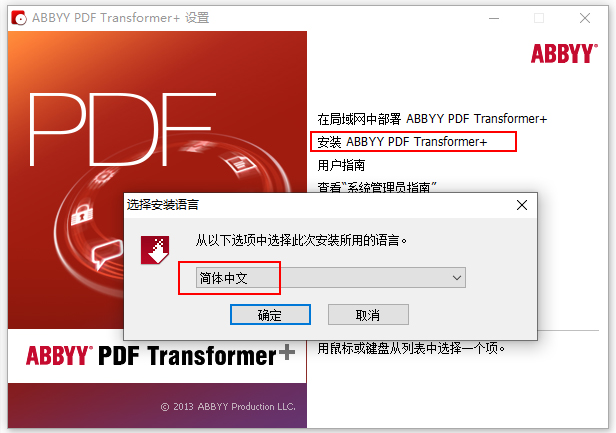 2、双击文件ABBYY_PDF_Transformer_Plus.exe,依提示安装,选择简体中文;