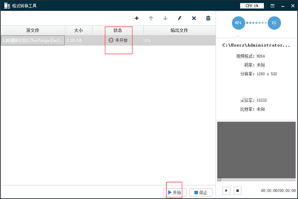 软件自动识别录像的类型,您所需要做的只是添加录像文件,然后轻轻点击一下“开始转换”按钮。