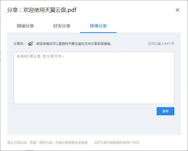 6、微博分享,可以直接把文件分享到微博,并填写微博内容。