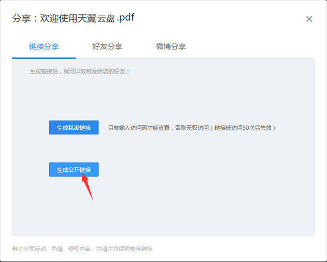 使用天翼云盘linux版本如何分享文件?
