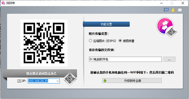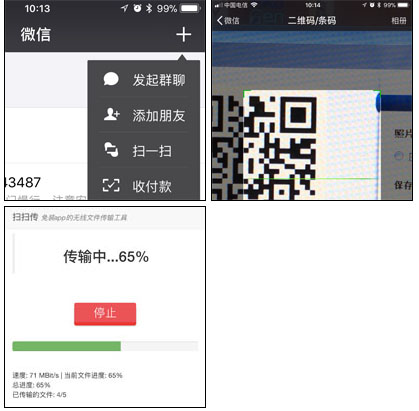 提示:您也可以使用其他的支持扫码的App来扫码传输 。