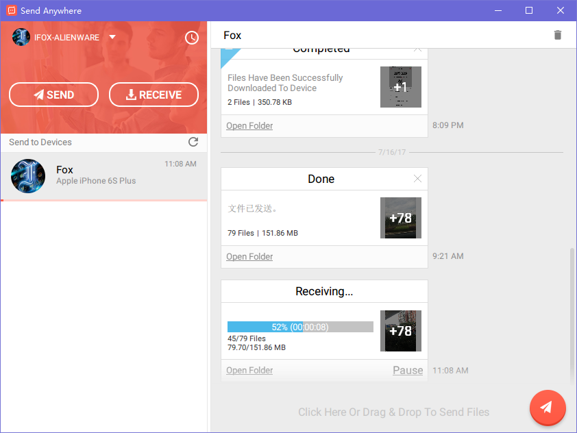 5、所分享的文件不受大小限制,想要与其他人分享大型图片或视频只需发送链接,其他任何使用Send Anywhere的人都可随时接受。