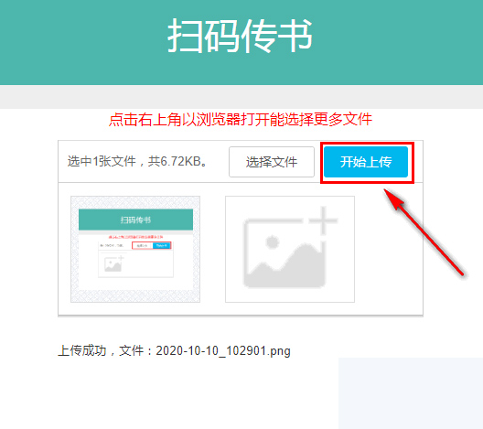 4、然后单击“开始上传”,上传成功之后,可以在此页面中看到上传成功的字样,