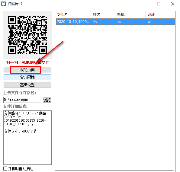 1、解压扫码传书软件并直接运行软件打开使用,打开之后,单击我的页面选项,