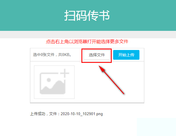 2、跳转到浏览器中并打开此界面,单击“选择文件”从资源管理器中添加文件目录,