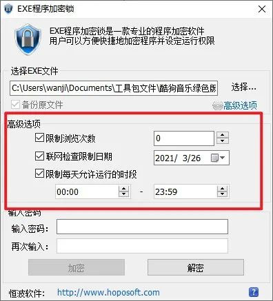 不过话说回来,虽然它是个免费工具,但功能还挺全面的,特别是高级选项里的那些限制功能,真的很贴心。尤其是用来加密一些游戏或者需要时间控制的软件,简直就是量身定做的。总的来说,挺推荐的!