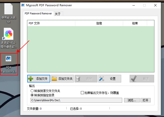 1、下载解压,打开Mgosoft PDF Password Remover软件;