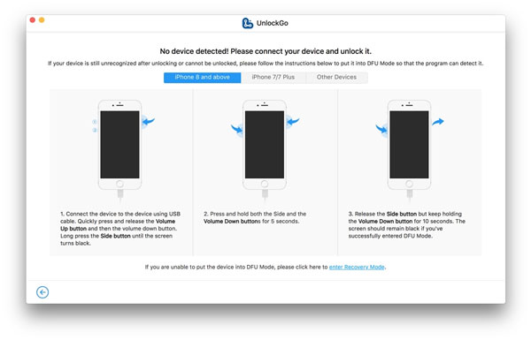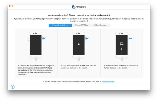 如果您的 iPhone / iPad 无法被计算机识别,请按照以下说明将您的设备置于“恢复模式”或“DFU 模式”,以便检测到它。
